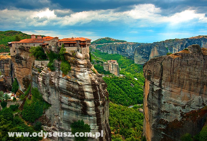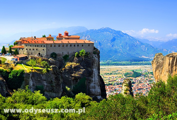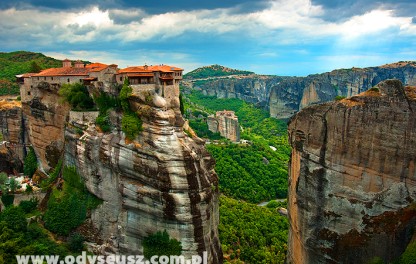 Śniadanie. Trzeci dzień dostarczy nam wspaniałych wrażeń. Pierwszym punktem będą Meteory, czyli przepiękny masyw skał piaskowca, na szczytach którego „zawieszono w chmurach” dwadzieścia cztery prawosławne klasztory. Miejsce to jest obowiązkowym punktem każdej wycieczki do Grecji. Wzniesione w XIV wieku na osobnych skałach sięgających 540 m. każdego roku zachwycają miliony turystów. W sześciu z nich nadal toczy się monastyczne życie. Nie bez powodu obiekt ten znajduje się na liście światowego dziedzictwa UNESCO. Będziemy mieli okazję zwiedzić klasztor Wielki Meteor (oryg. Megalo meteor) oraz urokliwą wytwórnię ikon bizantyjskich z możliwością ich zakupu. Powrót do hotelu, czas wolny. Wieczorem obiadokolacja i nocleg.
