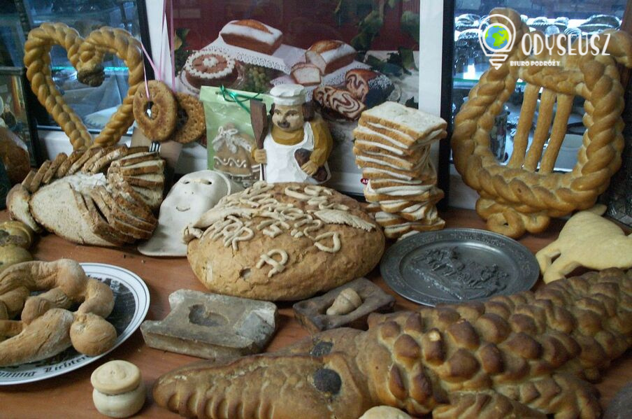Wyjazd z umówionego miejsca. Przejazd do Muzeum Chleba w Radzionkowie - projekcja filmu „Chleb” przedstawiającego krótką historię chleba, tradycje z nim związane oraz proces produkcji chleba kiedyś oraz dziś, warsztaty formowania i wypieku plecionek z ciasta chlebowego oraz późniejsza ich konsumpcja. Prelekcja na temat szacunku do chleba, lekcja w dawnej klasie szkolnej (wszyscy siedzą w dawnych, drewnianych ławkach szkolnych) – opowiadamy o historii nauczania oraz zwyczajach panujących przed laty w szkołach, pokazujemy dawne książki, elementarze, materiały piśmiennicze, stroje oraz przybory, każdy będzie miał okazję spróbować pisania rysikami na kamiennych tabliczkach.