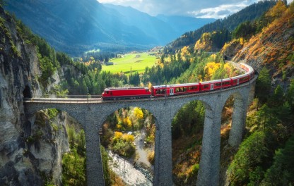 Po śniadaniu przejazd najpiękniejszą trasą kolejową na świecie w słynnym "czerwonym pociągu".